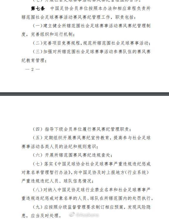 此前,中国足协正式印发《中国足球协会社会足球赛事活动赛风赛纪管理办法(试行)》,其中强调“主办跨区域社会足球赛事的会员单位,需履行事前报备程序”。